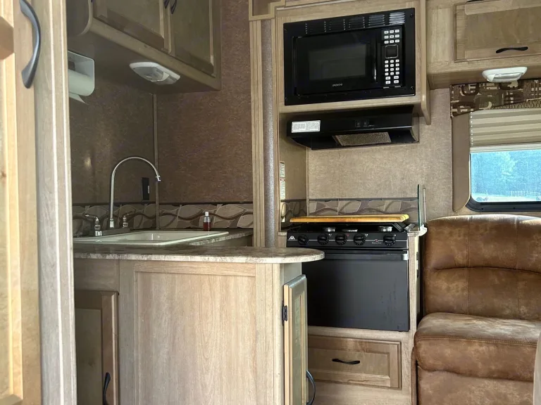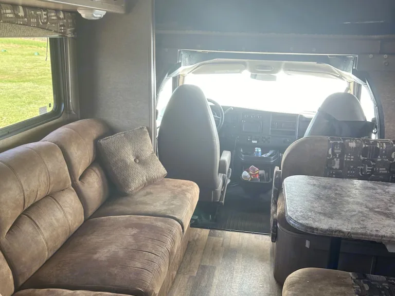 Your adventure awaits! Whether you find a serene lake setting or plan an epic road trip, this is the perfect way to make memories for a weekend or a week or two. Featuring 2 slides there’s plenty of space to be comfortable. The rear bedroom features an actual door (not curtain) for privacy, sufficient closet space, a tv, and a queen bed (which has space on either side vs, being confined by walls). There’s a set of fixed bunk beds that each have a tv. The plush couch converts into a nice bed, as does the dinnette. One or 2 can also sleep in the bunk over the cab. It’s built on a Chevy chassis and features a backup camera.What's includedWe have included basic kitchenware for cooking and eating. Feel free to bring your instant pot or other favorite kitchen items. There are also towels, linens, camping chairs, and roasting rods available for use.Other things to noteHelp us keep this RV in good condition and a comfortable unit for a variety of families including my own. Please, no smoking, no drugs, and no pets.