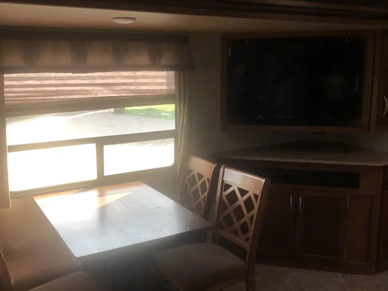 I have a beautiful 2017 rear kitchen fifth wheel. It has two beds, a master and one where the couch folds out. There is plenty of room for an air mattress (included) for an additional guest! There are two recliners in the living area also. This camper has a nice size shower with a molded seat! There are two slides in the living room that makes it super spacious! What's includedFresh linens, paper plates, paper cups, paper bowls, silverware, small blender, small coffee maker, toaster, cleaning supplies, outdoor table, outdoor chairs, and some lights for outside