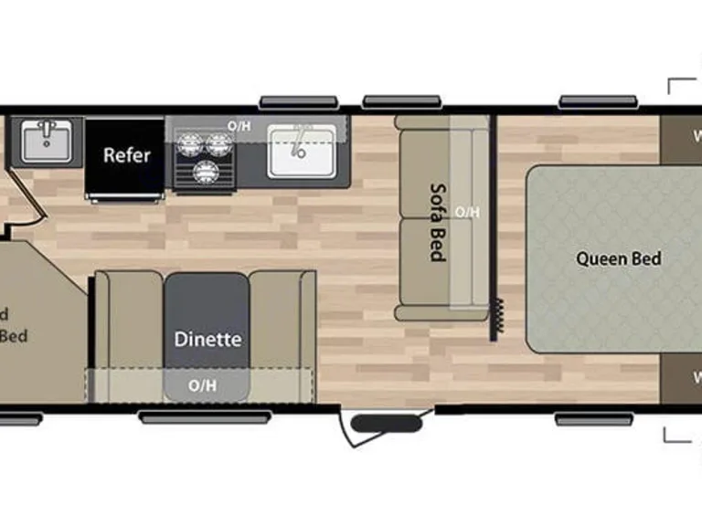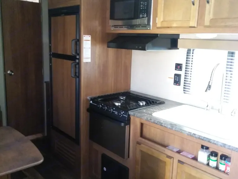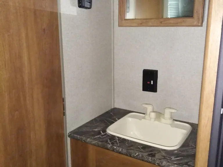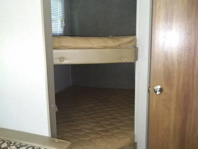 New, modern bunk house trailer with lots of sleeping room and storage for large families. Has a queen master room with closets and other storage space. Also has two full size bunks with storage underneath. A leather sofa in the sitting area folds out into another full size bed. The kitchenette also folds down to a full size bed with storage underneath the seats. The bathroom has a standup shower and sit down tub. The kitchen has lots of cabinets for storage with all appliances in good working order. There is a bluetooth radio with inside and outside speakers. There are usb chargers within the outlets for easy charging capabilities. The canopy has an electric button for easy rollout and outside lights. There is also an outside shower head if needed. Rental fees are for the renting of the trailer alone. You must provide your own blankets, pillows, towel, utensils, etc. For fully furnished options please contact us ahead of time.