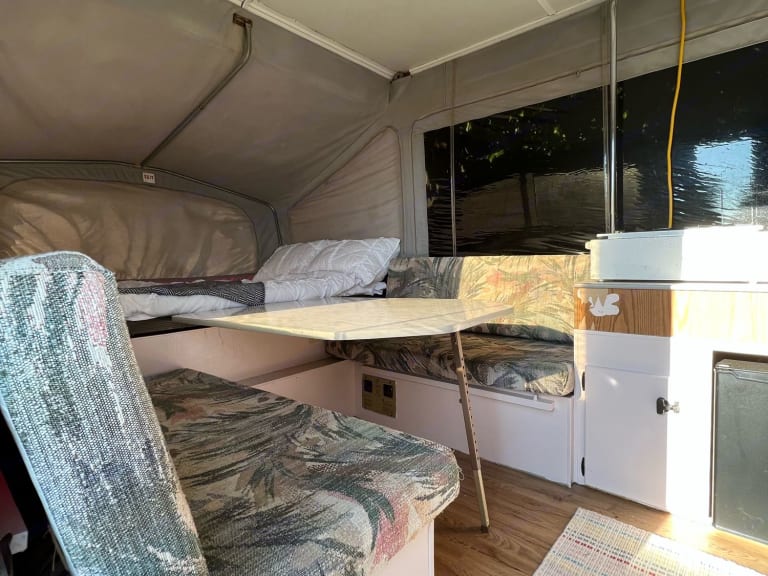 This 17 ft camper is exactly what you need this summer! Fit with AC, brand new refrigerator, coffee maker, propane stove, and sink! Has electric and water hookup. You can mount the stove inside or outside the rig. Feel free to bring your furry friends along on your trip, this camper is pet friendly! What's includedFresh linens, bag chairs, outdoor rug, awning lights, utensils, cookwareOther things to notePets are welcome, but be respectful of the rig. Don’t leave them alone if they are prone to chewing or escaping. Any damage will be your responsibility.