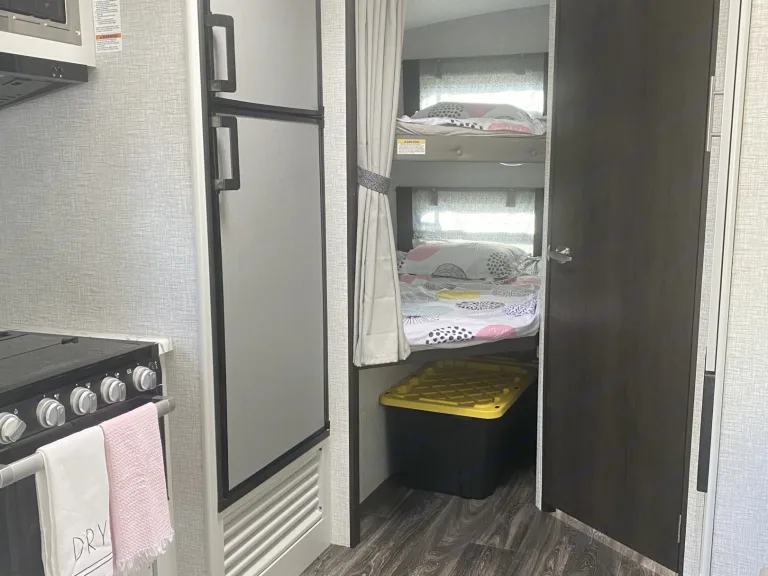 Our Happy Camper is a 2021 Keystone Bullet Ultra Light! It features a full length Queen bed, double bunk beds and has a convertible dinette (sleeps up to 8 people - 6 comfortably). It has a bathroom with tub/shower combo as well as an outdoor kitchen. The camper has a solar panel installed, so you’ll never run out of batteries in case of a power outage!The camper will be set up and ready to enjoy at Sturgeon Lake Regional Park Campground in SK in June, July, August. What's includedThe camper comes fully equipped with: