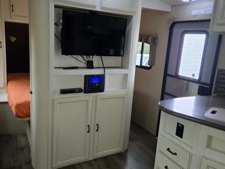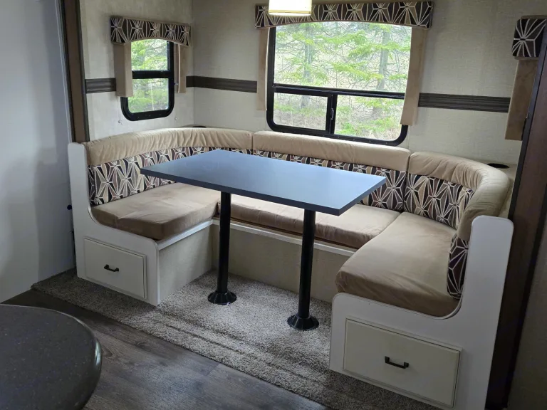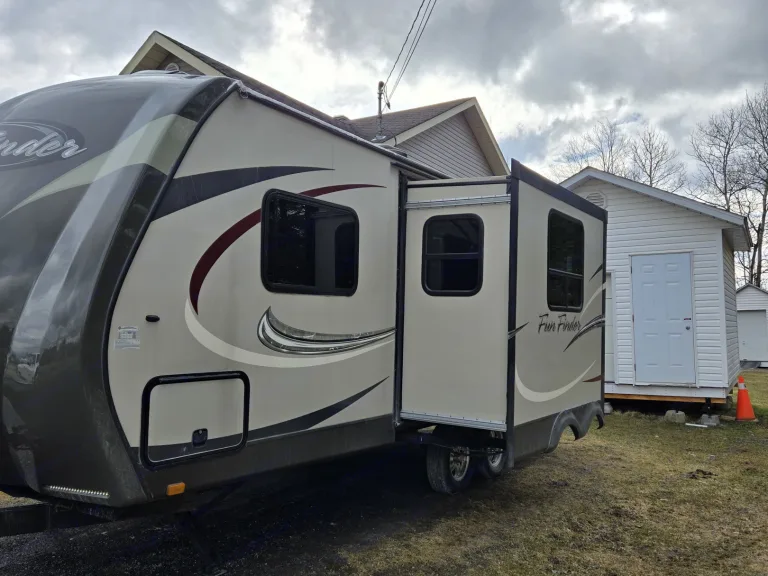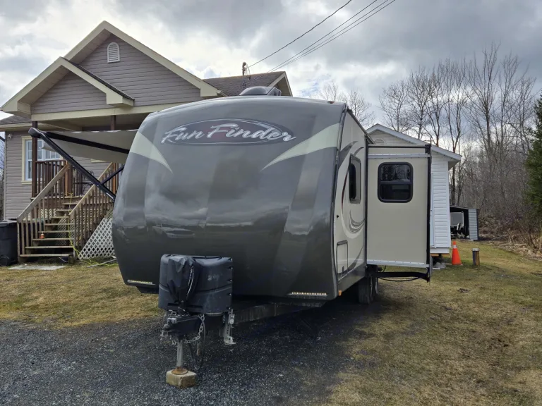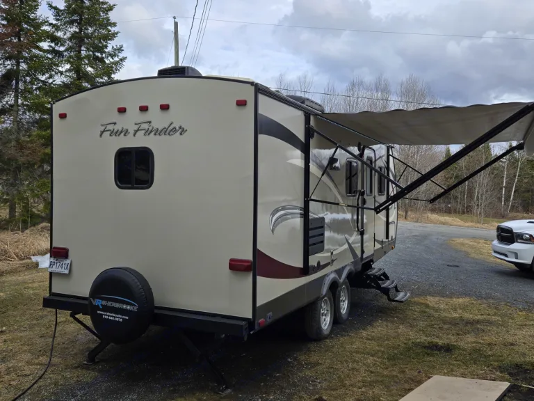 Magnifique petite roulotte pouvant accueillir jusqu'a 4 personnes avec possibilité de vous amener un matelas simple pour pouvoir accueillir une personne supplémentaire. Air climatisée qui saura vous refroidir durant vos soirées d'été chaude afin de mieux dormir. Simple d'utilisation avec l'ajustement des crics de service électriques. Cette roulotte possédant deux essieux permet une meilleure tenue de route, donc voyagement plus agréable. Grandes espaces de rangement permettant d'apporter tout ce que vous désirez afin de bonifier votre séjour. La salle de bain avec sa grande superficie permet un confort hors pair et rendant les douches plus simple pour les familles. Le matelas du lit principal étant neuf, vous fera dormir sur des nuages.