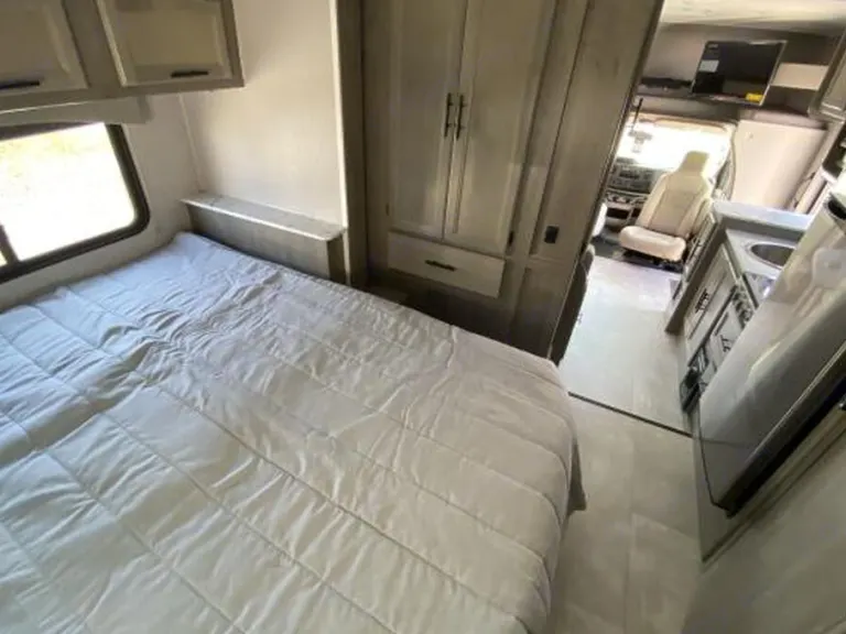 Sabbath (meaning - abstinence from work) is a 2023 21 foot (23 feet overall) Coachmen Class-C model 21RS. It has a small rear bed slide allowing for a walk around rear bedroom, a rear bathroom with shower. the kitchen is well equipped with all the usual and stocked for 4-6 occupants. 3 double beds allows up to 6 people (Rear queen, front queen with 300 pound max, dinette goes down to a small double, best suited fr 2 children or one adult, 2 if cozy is your thing.