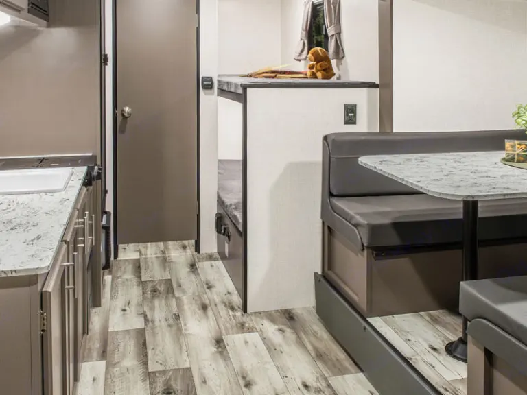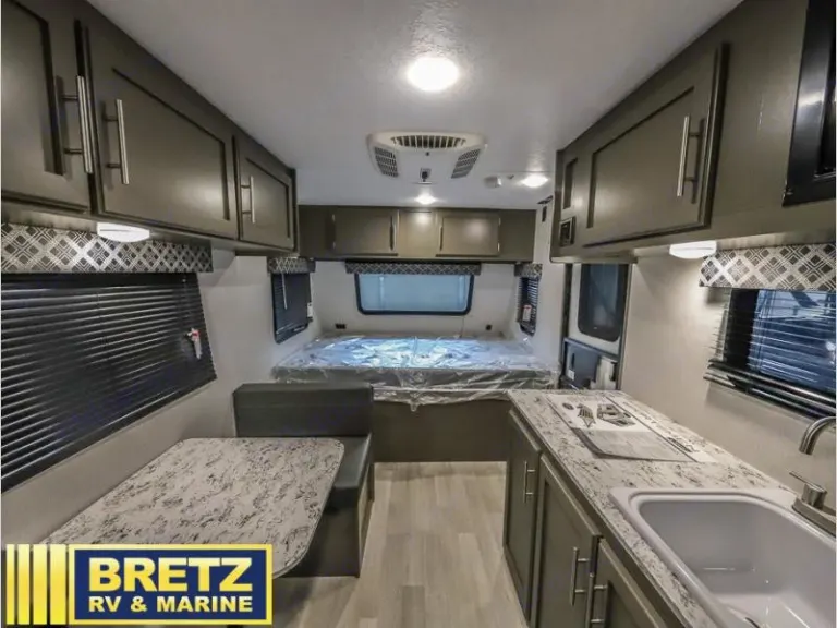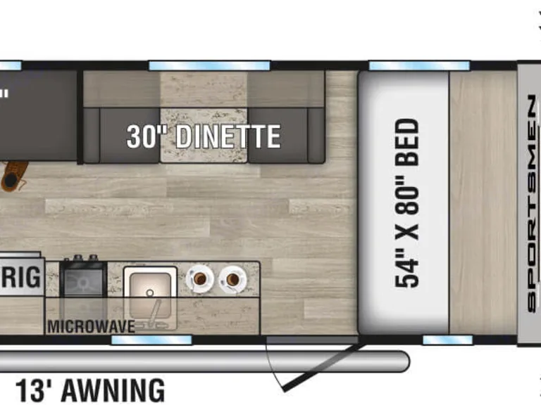 This camper is perfect to take the family out camping. The Sportsmen has the ability to sleep 5 with a full bed in front, rear bunks and a convertible dinette. It is incredibly light with off-road package to make getting to and fitting wherever you want to camp a breeze. Bring the pets and start your next adventure!