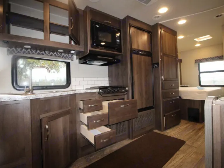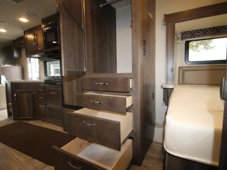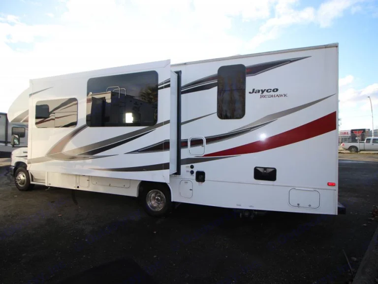 Sleeps 6 PeopleThis Redhawk 26XD double slide out class C gas motorhome by Jayco really can be your home on wheels with plenty of space for family and friends.As you enter the motorhome to your right there is a cab over bunk and an overhead TV.The galley has an angled double kitchen sink, three burner range, microwave, and 8 cu. ft. refrigerator along the curbside. The opposite side has a slide out with a booth dinette, sofa, and an overhead cabinet.Just outside of the bathroom there is a linen cabinet, which is nice for extra storage. Inside the bathroom you will find a toilet, sink, and shower.The rear bedroom has a queen bed slide out and a large wardrobe. You may even choose to pull the accordion door closed at night.You will appreciate all of the storage that the overhead cabinets have to offer, plus all of the exterior storage compartments. Outside you can even enjoy the shade from the 13' awning, plus more!
