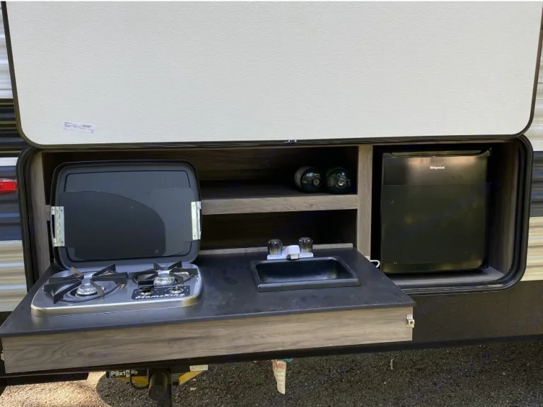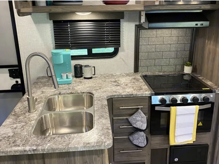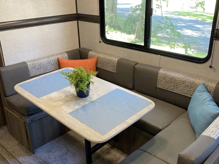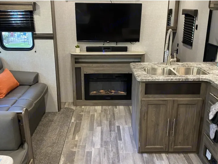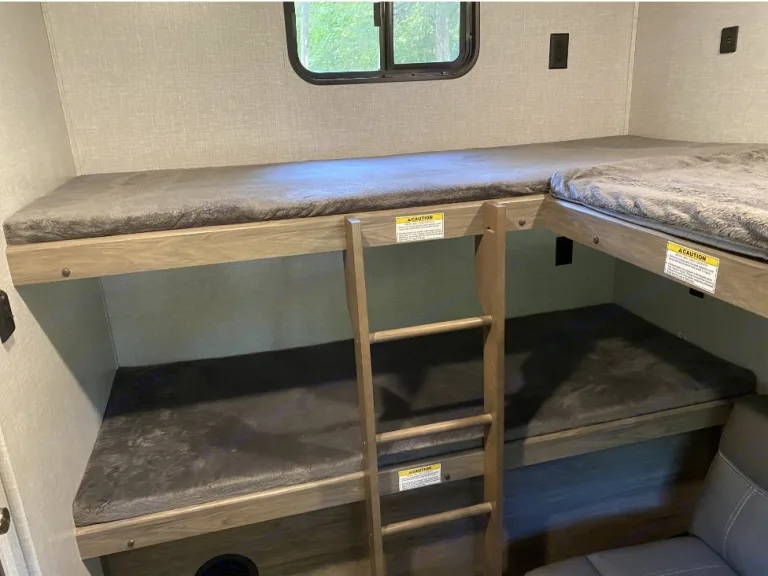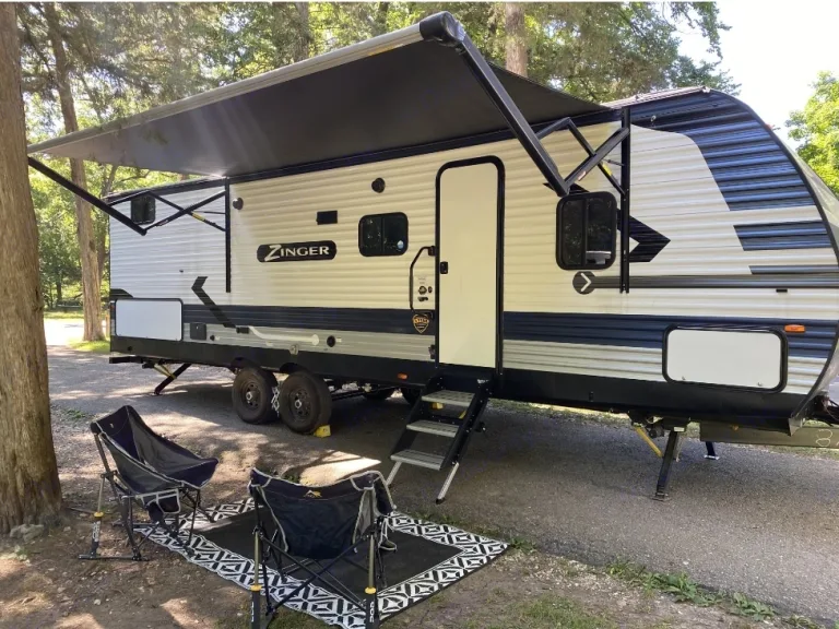 Our 2021 Zinger features a modern design and comfort for the whole family. U-shape dining that converts into a bed. 40×70. There is a sofa bed in the main living room that will convert into a bed also. Heat and air conditioning and rated for winter weather. Power everything stabilizers, awning and slide-out.We are pet friendly, please no puppies, housebroken pets only, and please do not leave them alone in camper unless in a kennel. We take pride in our camper and hope you will care for it as we do.Camper is a 30 amp hookup-no generator.