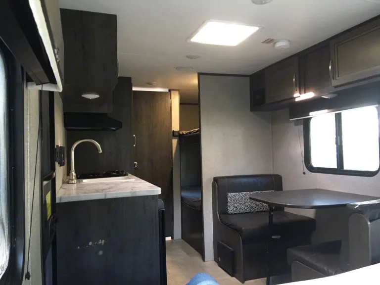 We have a bunk bed, queen bed and a transformational dinette for an extra guest.