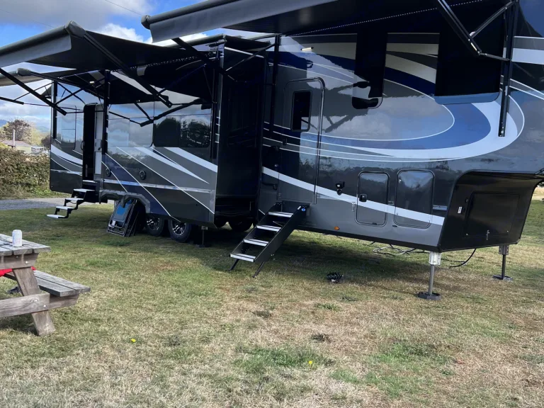 “Da Camper” is a tandem axle fifth wheel offering a huge garage, three slide outs, dual entry, and so much more, to give you the ultimate experience while camping with those you love and all your toys. With 16” you can bring any number of things from ATV’s, motorcycles, kayaks, bikes, etc. And after unloading them all using the ramp door, you can easily set up the ramp as an extra patio space with an awning.Sleeping arrangements are numerous and include, the electric queen sized happy jacks bed with dual opposing sofas in the garage, the xl-twin bed in the loft accessible from the main living room, the King bed in the front owners suite, and the fold out sofa bed in the living room.Your main living area includes a large flat screen TV w/ surround sound and a fireplace for heat and/ or ambiance that everyone can watch from the cozy L- shaped sofa or the reclining sofas with massaging and heat controls next to the dinette table.The L-shaped kitchen is fully equipped with all the things you’d need to prepare and serve a great meal for your special peeps. From a full size residential fridge to the 4 burner gas stove top/ range, a microwave, and plenty of pantry space for all your ingredients! The dinette table can accommodate 5 with the flip up extension or you can eat in the garage on the flip up sofas and table.The front of the rig has a spacious full bathroom, with a separate vanity area! No cramped quarters here, and can be accessed from the hall or the private owners bedroom! The owners bedroom offers a King bed with an ample wardrobe slide, plus phone chargers in the nightstands and reading lights in the overhead cabinets.This glamping rig is a fun home away from home that is sure to create some lasting memories!What's included• Fully stocked kitchen, coffee maker, camping chairs, smores sticksRecommendationsFrom the Kitsap peninsula, we are surrounded by great places to visit! We are only an hour from The Olympic National forest, and about 3-4hrs to the coast.