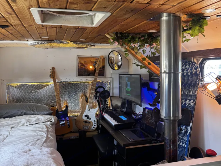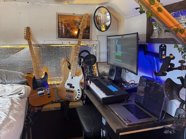• A huge desk and monitor setup, so you can work, edit, or stream while traveling.