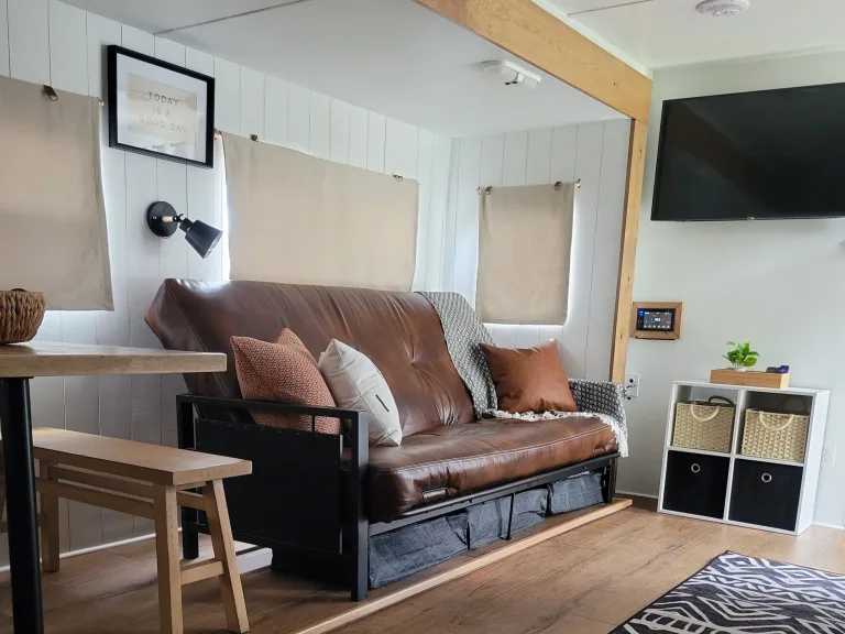 Remodeled 2005 Wildwood. Everything is bright and modern in this rig including floors, paint, and countertops! A brand new bathroom and kitchen remodel adds all the comforts of home. Relax on the new leather futon to enjoy a movie on the new 40" smart TV with your own streaming account (with a hotspot) or DVDs! Also enjoy the great outdoors with a 16' awning. With a queen size bed, twin bunks, and a full size futon, you will have room for the whole family. Included is a 3 burner gas stove, oven, and microwave. This rig carries 46 gallons of fresh water on board, a 6 gallon water heater, and indoor and outdoor showers. You will also find games, cooking utensils, and of course coffee included. Don't worry, there is also plenty of storage for all the gear you will be taking on your adventure. The Wildwood is towable with a 1/2 ton truck as long as you have a brake controller and a 7 pin round electrical hookup. It is a bit of a bigger trailer, so if you don't have towing experience delivery is available upon request. What's includedIncluded with the rental is 6 camp chairs, hammock, cookware, electric griddle, utensils, coffee pot, cutting board, 6 bath towels and roasting sticks.Delivery and pickup up to 85 miles from Sioux Falls available upon request.RecommendationsNewton Hills State Park has great hiking, biking, and exploring. Less than an hour away from Sioux Falls, there is swimming and geocaching as well as great campsites. A little farther south, Lewis and Clark State Park offers a ton of recreational excitement. They have great bike trails, amazing camping, and most of the campgrounds are right on the river. To the north, one of our favorite places is Oakwood Lakes State Park. The trees alone are a great reason to camp at Oakwood! There are many great state parks and private campgrounds within an hour and a half of Sioux Falls - adventure awaits!Other things to noteWe think of the Wildwood as an extension of our home. Our family loves it and we always look forward to being together and creating memories. We would really appreciate it if you would also take care of it as if it were your own. Please do not smoke or have pets inside the camper. Please clean up after your vacation, and leave our camper the way we gave it to you. Fees will apply if there is any excessive cleaning, or if the camper is not returned in the condition it was delivered.