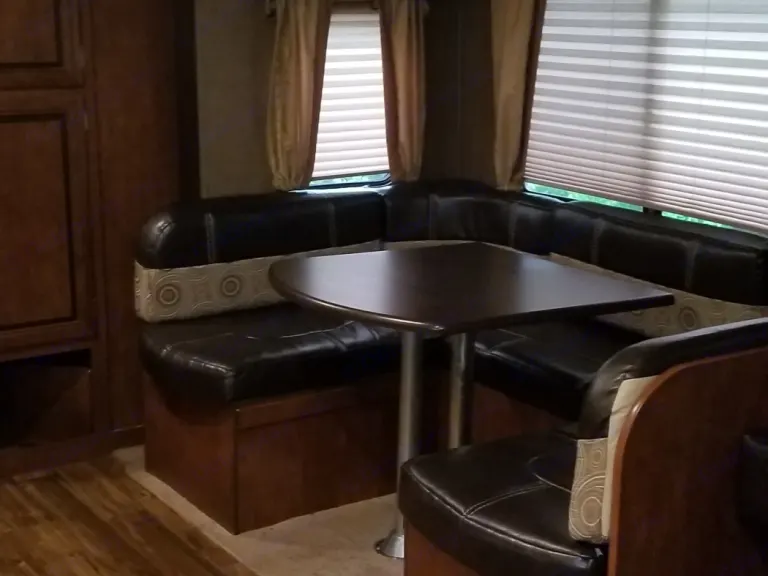 Queen master with 2 doors, walk in bunk room with 4 beds 1 turns into table with 2 benches, has separation door. Nice kitchen with double sink, stove, oven, microwave, large frig and freezer. Has u shaped bench and table. Couch, Cable and Satellite connections. Outside kitchen.