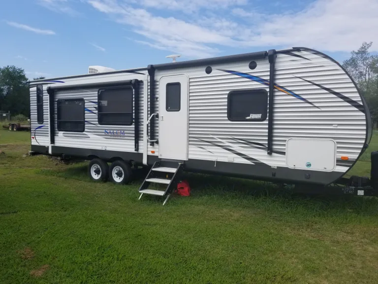29 ft Salem 2 super slides, fireplace, indoor outdoor stereo, power awnings, power Jack's, fully equipped kitchen bathroom master bedroom, sleeps 8. Outdoor lighting with 10 color changes.