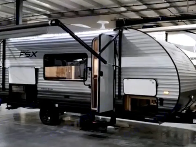 Wildwood FSX Travel TrailersThis a new camper that is packed with features and weighs in at less than 3,900 lbs with full tanks. You can tow this camper behind a small SUV. The trailer has brand new trailer tires which are much better quality than the standard RV factory tire. We just pulled it 5000 miles up through the Midwest behind our 2016 Toyota Highlander with zero issues. We provide a Recurve 3 weight-distribution hitch that makes towing with a midsize SUV a breeze. The unique front queen with a memory foam mattress bed flips up to create additional seating space during the day. The kitchen provides a booth dinette, coffee maker, separate top freezer bottom fridge that runs on propane while traveling to keep food cold and frozen. This camper offers a one of a kind panoramic window, modern appliances, while the rear bunkhouse gives you double over 4 person double bunks for additional flexibility and comfort. There is also an outdoor tailgate fridge with a grill propane hook up. The flat-screen TV comes with an NFL ticket, Amazon Prime, and Netflix. There is also optional live Fubo TV for a small fee on weekly rentals.This camper is perfect for a family or couple that has never towed before and does not want to rent a large tow vehicle.SpecificationsHitch Weight: 502 lb.UVW 3455 C 1447 lb.Exterior Length: 22' 6"Exterior Height: 10' 2"Exterior Width: 90"Fresh Water: 38.00 ay Water: 30.00 Water: 30.00 ning Size: 14'