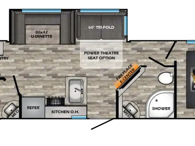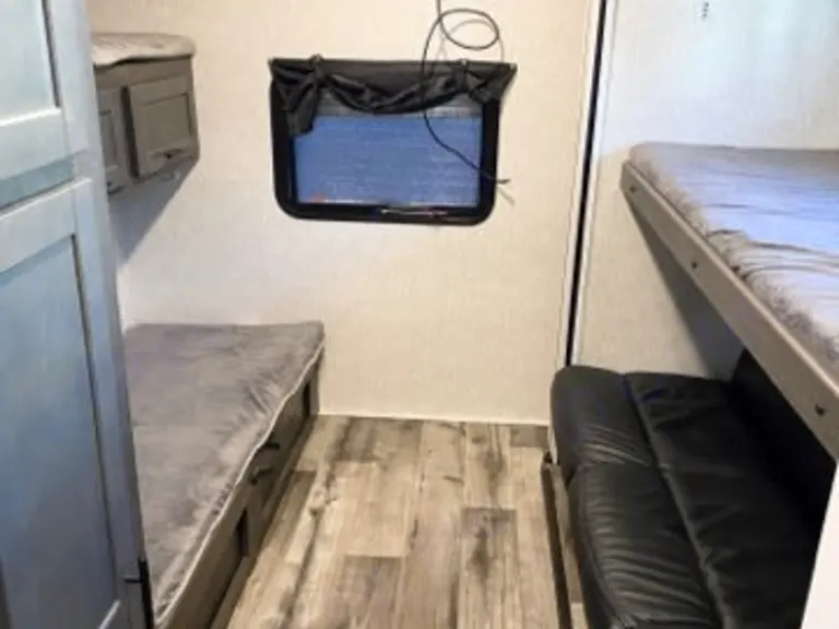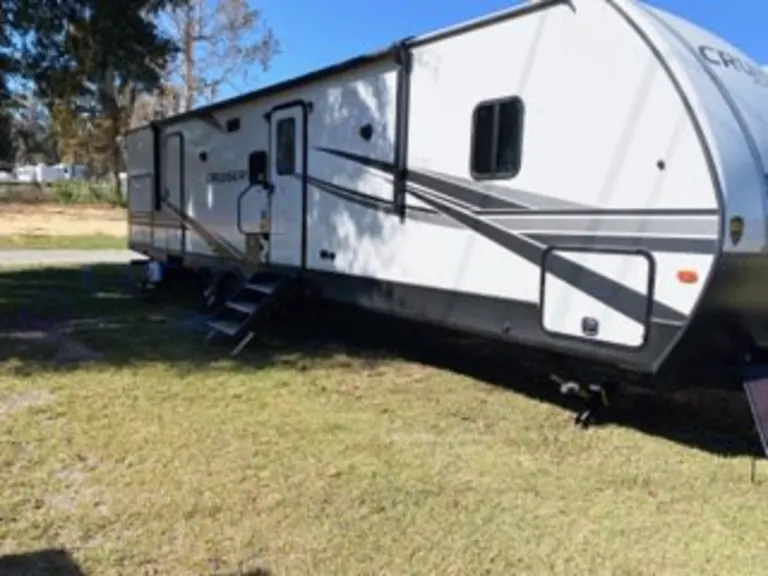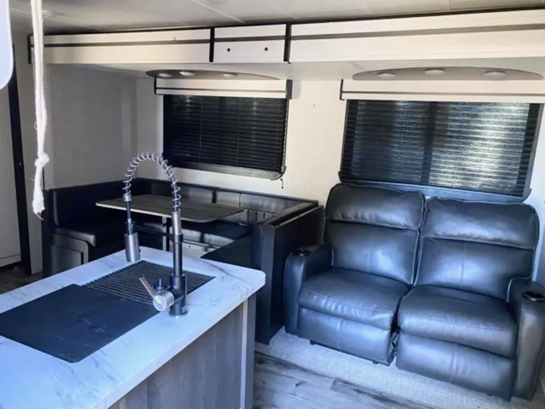 This is a spacious camper with two bathrooms, bunk house and a master bedroom that has privacy. The master bedroom has a king size bed with under the bed storage, two closets to hang clothes and over head storage. The master bath has a stand up shower and plenty of space and storage. Living room has two reclining leather seats with heat and a cooling feature along with the massage feature and lighting. In the living room there us a 32 inch blue tooth TV with the ability to stream music to speakers inside the camper as well as outside. Under the TV is a beautiful electric and fireplace with different light settings. Spacious kitchen with deep sink, 3 burner gas range and plenty of refrigerator space. Kitchen table and seats convert into a spacious sleeping area when needed. The second bath room is a half bath with a sink, and toilet with access to outside. Half bath also has storage for linens and under the sink storage as well. Outside the camper features step above single folding steps, outdoor speakers and an outdoor kitchen with mini fridge sink and gas grill. RV also comes with the Winegard air 360 for local TV and radio. The front of the camper comes with big storage compartment, two propane tanks and electric hitch. The camper comes with a big electric awing for shade and comfort. What's includedIncluded with your stay towels, bed covers, kitchen utensils, one frying pan and medium size pot.RecommendationsSun Outdoors and Fireside RV resort are two great places to visit and make memories. Near Slidell is Fountainbleau State Part which has access to a small beach and great hiking trails. Other things to notePets are welcome! Rules: Awing must be in during high winds and not left out over night. Only toilet paper supplied by owner can be utilized, residential toilet paper can clog the septic system and cause damages. Fees may apply if rules are not followed.