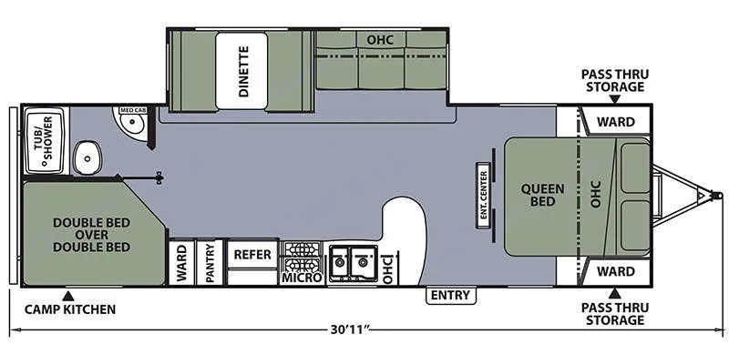 Welcome to our roomy and pet friendly 2018 Coachmen trailer. Plenty of room for a larger family, sleeps a maximum 8 people. There are 5 beds, 1 queen size in the bedroom area, 2 full size bunks, a convertible dinette and a fold out couch. Everything you need is available in this fully stocked rv. Kitchen is stocked with dishes and utensils, and a selection of cookware. Beds will have fresh linens provided, and a variety of pillows. There is also an outdoor kitchen with a grill and small fridge. Awesome outdoor shower for cleaning off dirty feet. In the storage area under the rv you will find some camp chairs and an outdoor rug for under the awning and entrance door.What's includedCamping chairs, fully stocked kitchen, towels, fresh linens, coffee maker with pods, outdoor rug. Coolers are available upon request. RecommendationsPlease contact me if you have any issues during your rental. I am happy to help or provide information on how things work in the trailer. Other things to noteNo smoking inside trailer!!!!