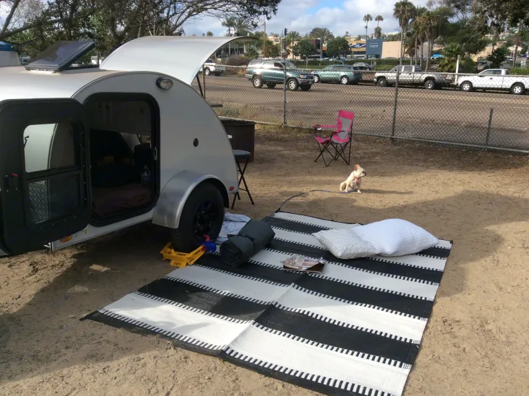 Cool little compact Little Guy Joey Xp 2014 edition teardrop trailer 5x10 includes trailer, excellent almost new condition, white cabinets inside, adjustable interior fan, solar plug in panel, pull down table in back to use as your temporary beach office for the day or enjoy a great dinner off the back table, electric plugs and outdoor overhead lights. Wonderful small size trailer that sleeps 2 with a couch that folds into a full bed. Seasons and events may affect pricing as well as distance.