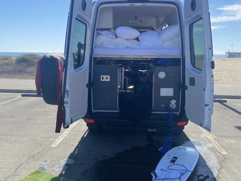 2017 Sprinter with beautiful offgrid build. Dependable, comfortable and with plenty of room for your gear. What's includedFresh linens, camping chairs, double bike rack, awning, Alpine sound Apple CarPlay and Android, new off-road tires, off road suspension and stabilization bar. Toilet, outdoor shower, gas stove, diesels heater, wool Insulation, Maxxair fan, queen size retractable bed, dining/work space, privacy glass, rooftop rack with perimeter lights, 20 gallon water tank, 10 gallon grey water tank, 3k watt inverter, 200 watts of solar RecommendationsLocal beaches are a great getaway