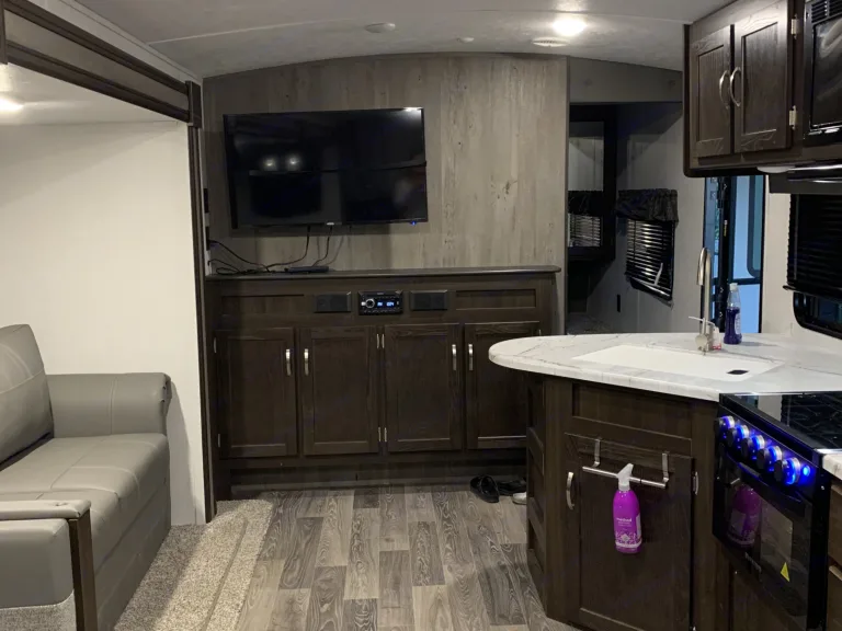 Brand new 2021 camper trailer with plenty of room for the whole family! This camper comes with a private master bedroom with queen size bed, two 300 lb capacity full size bunks, hideaway bed in couch and fold down table. There is plenty of storage and a good size refrigerator for those longer trips. This camper also has an entertainment system with BT capabilities so that you can enjoy music inside and out or watch a movie on those rainy and cold days.We do offer delivery and pick up within a 30 mile radius for a fee and have other amenities available upon request!