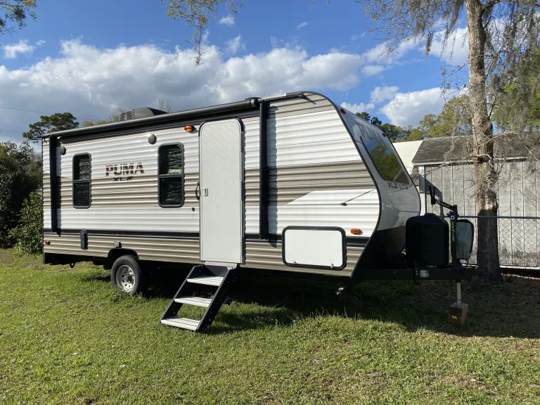 This Brand NEW Palomino Puma 187TH is the ultimate camper for your weekend or cross-country trips. She has everything you could need for your adventure, our family has an absolute blast traveling with this camper and we want to share the fun with others! Some of her amazing qualities include a 13,500 BTU AC (very important for camping in Central Florida!), 9” memory foam mattress to rest after a night out by the fire, and a large garage to bring the toys along with you! The camper is also outfitted with a removable Condor motorcycle wheel chock to keep your motorcycle secure during travel (inquire for details!). We are able to set up the camper for an additional fee, or we can help you get set up with the Equalizer Weight Distribution Hitch that is already installed on the tongue of the camper.All inquiries and questions will be answered within 12 hours. All rentals are a 2 night minimum with a 15% discount for weekly bookings and 25% discount for monthly bookings!