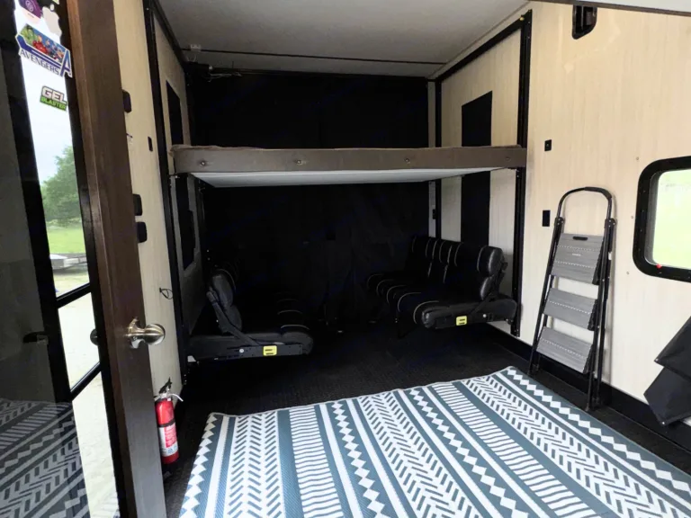 Ready to explore the wild beauty of Northern Michigan with all your gear in tow? Meet the Northwoods Basecamp — your ultimate adventure-ready toy hauler built for dune riders, trail chasers, and beach campers who want room for everything from ORVs to paddleboards.Whether you're headed to the Sleeping Bear Dunes, bombing down the ORV trails in Kalkaska, or parking lakeside near Torch Lake or Pictured Rocks, this camper is your go-anywhere, do-anything home base.With a spacious rear garage, you can haul your ATVs, dirt bikes, kayaks, mountain bikes, or whatever gear fuels your adrenaline. Once parked, the garage converts into a cozy living space, dining area, or bunk room — perfect for a family, a group of friends, or a couple wanting space to stretch out.Going off grid? No problem! We work with a mobile pump service that travels around the Grand Traverse / Kalkaska Area. Add the Mobile Pump Out service on your booking for this exclusive service.What's includedRear Garage for Toys & Gear – haul your ATVs, mountain bikes, or kayaks with easeRamp Converts to Deck – perfect for grilling after a day on the trailsQueen Bedroom + Drop-Down Bunks – sleeps 6 comfortablyHot Shower + Full Kitchen – just because you’re in the woods doesn’t mean you rough itBluetooth Sound System + LED Awning Lights – for when the bonfire turns into a late-night hangRecommendationsDune days at Silver LakeForest trails in the Huron-Manistee National ForestsORV weekends with friendsFall color tours or snowmobile basecamping in winterOther things to noteAvailable for pickup with a compatible vehicle, or choose our easy delivery and setup option within 50 miles — show up and start adventuring, no towing required.NO SMOKING // PETS MUST BE PRE-APPROVED