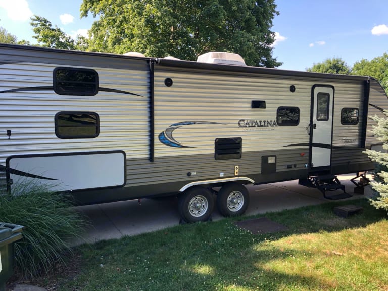 This 2019 Coachmen Catalina is perfect for a family as it has three separate rooms - rear bunkhouse, living area and front bedroom with a queen bed. The living area includes extra square footage due to the large slide-out. The exterior has dimming led lighting and an outdoor kitchen (including a mini-fridge). Enjoy the campfires, bike rides, hikes and adventures while sleeping comfortably and having the amenities from home. Delivery only.What's includedOutdoor camping rug, pillows, linens, pots, pans, place settings, utensils, keurig coffee maker (byo coffee cups), toilet paperOther things to noteDelivery only within 150 miles of South Haven, MI.