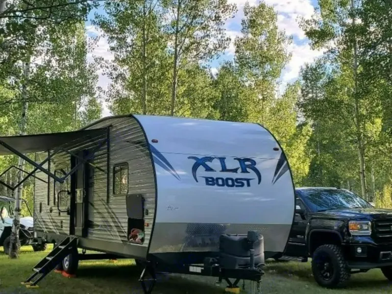 This XLR Boost is perfect for Dry camping or Site Camping, it is equipped with a onboard generator, 100 gallon Fresh Water tank, 38 gallon gray tank, 38 black tank and onboard 30 Gallon Fuel station. It has Electric and Water Hook ups to utilize site amenities.