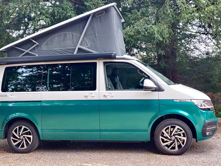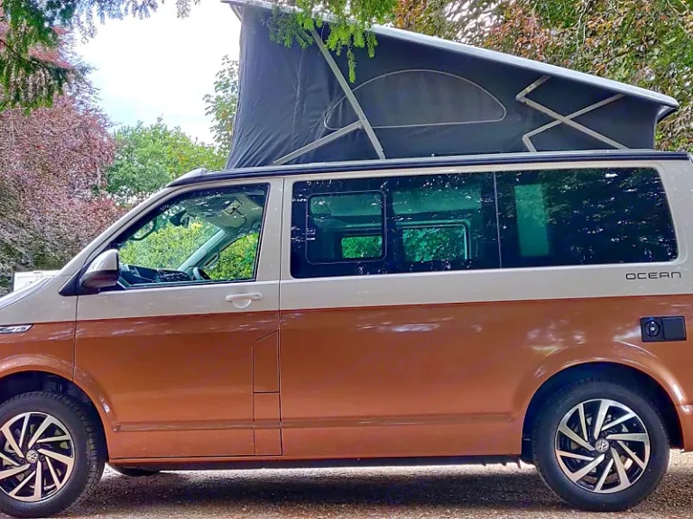 Iconic as ever. Refined, redesigned, restyled.For more than 30 years, the California has been synonymous with freedom and adventure, the perfect companion for spontaneous trips, weekends away or family holidays abroad. Now, the iconic camper van is relaunched, more sophisticated and comfortable than ever before, with a revised interior and host of technological refinements. Compact enough to be used as an everyday vehicle, the new California 6.1 ticks every box. Designed for the road, built for making memoriesThe very latest VW California Ocean campervan available for hire. The only campervan factory built entirely by Volkswagen. Seats\sleeps 4 people & comes fully equipped with a sink, gas hob, fridge, heater, two double beds & much more!The compact dimensions will see you at home behind the wheel and negotiating car parking spaces with the assistance of all around parking sensors and reversing camera will be a breeze.Whilst in camping mode you will be able to enjoy the cleverly and neatly stowed camping table and chairs which can be set up outside, and with the retractable awning, extend your living space into the great outdoors.The 42 litre top-loading fridge will keep your groceries fresh, couple that with the kitchen unit featuring stainless steel gas stove with two burners and stainless steel sink with adjustable tap, and you'll have all you need to prepare some amazing meals. All served up on the retractable table. Simply swivel the driving seats around and you have a 4 place dinner table.When night time comes the California has got you covered. The two double beds are designed with comfort in mind. Make your choice between an inviting 1.14 m x 2.00 m lower berth or the 2.0m x 1.2m upper berth benefiting from a slatted frame improving sleeping comfort. The elevating roof allows for an upright sitting position at the head of the bed. Shades are cleverly housed in the factory trims, simply retract them for privacy and making you feel safe and cosy. If you need to crank up the heating then the simply outstanding auxiliary heater will make you the snuggest bug in the rug!The VW California Ocean is the perfect vehicle for your road trip.