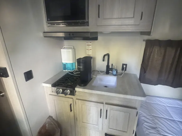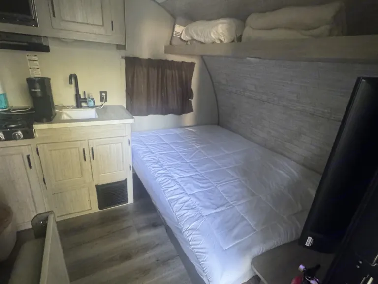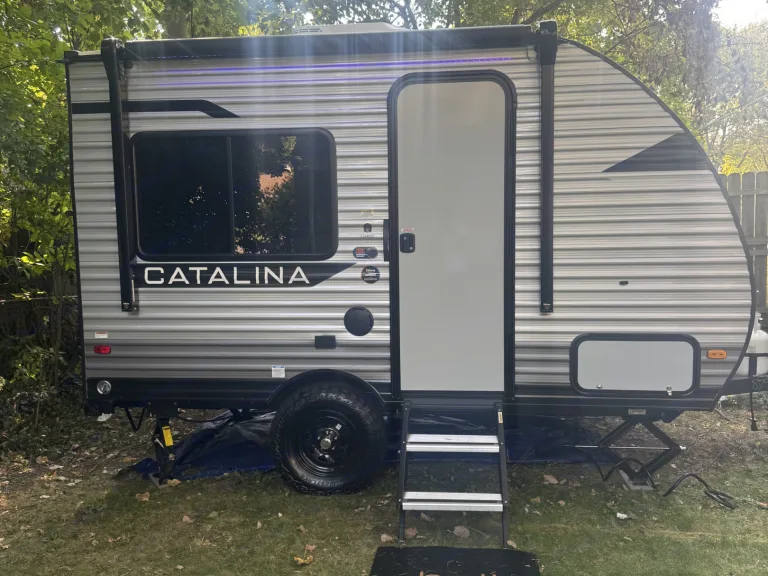 Escape to our 2025 cozy Catalina cottage for the perfect getaway! This modern, cozy space sleeps 2, with queen bed, convertible dinette, and equipped kitchen. Entertainment with a 40” smart TV, Wi-Fi, and JBL Bluetooth sound system. Relax outdoors under the awning, grill on the BBQ, hangout in the hot tub or explore nearby attractions. Climate control, a full bathroom, ample storage and hot water this camper is your ideal home away from home. Book now for an unforgettable glamping experience!