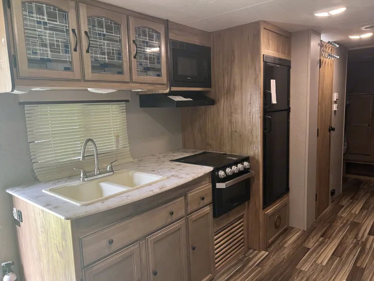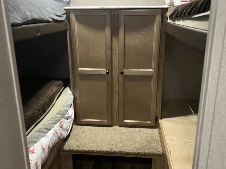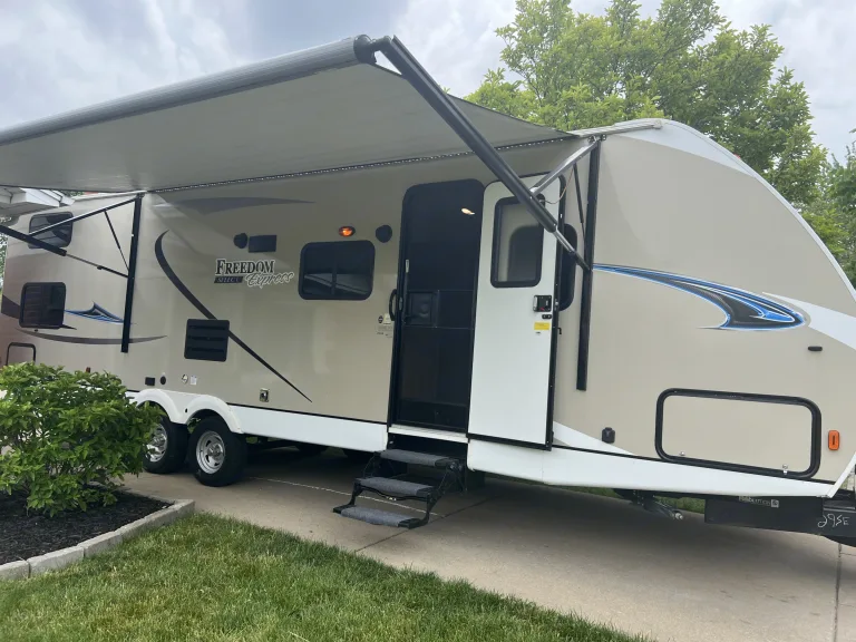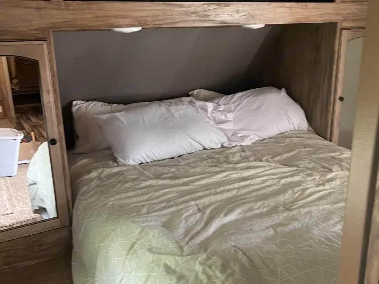 Look no further! Great for families!! Enjoy your camping adventure with all of the comforts of home! Sleep 8-10 depending on your needs. Our camper offers an upgraded queen bed at the front. The main living area features a fold down couch and U-shaped dinette that also converts to a sleep space. We also have a quad bunkhouse. The kitchen comes fully equipped with pots, pans, coffee pot, utensils, and more! We have a bike rack and storage on the back on the trailer. Large living space with one, large slide out. This is a family camper so please leave it in the same condition as you found it :)Local delivery may be an option so let me know if that is something you are interested in!2019 Coachmen Freedom Express Quad BunkhousePlease note that this is for in-state use only (Michigan) and subject to approval for Ohio and Indiana. RV must stay in the location stated in the contract and not moved to any other locations without written consent of the owners.**Black tank must be flushed at campground or have full hookup. If black tank is not flushed, there will be a $100 fee to flush and sanitize. What's included•Pots, pans, and coffee pot