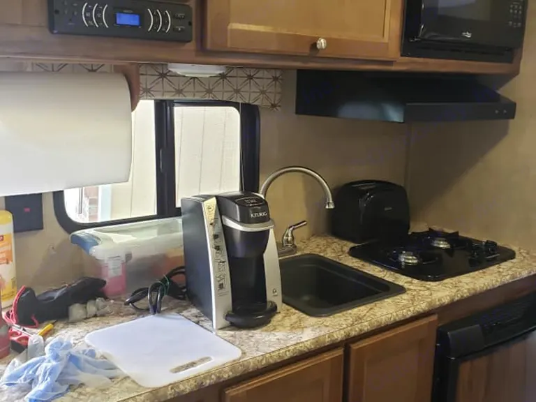 * An Owner / Operators Manuel is located in the Camper if in case you come across a problem in operating procedure. You can download our owner's manual or the Forest River Owner App.What's included*All the basic cookware you will need. Pots & Pans, utensils, cups, paper plates provided. Toaster, Coffee Maker.