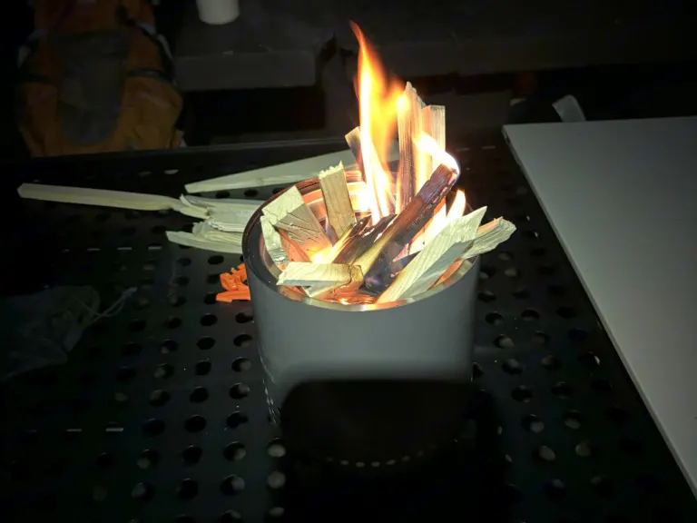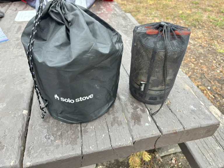 Mini smokeless fire pit with a small bag of wood