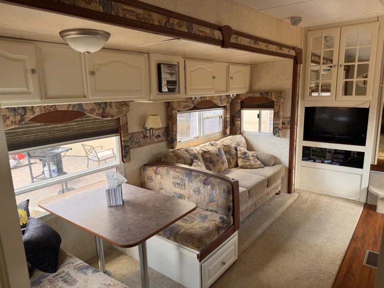 Escape the ordinary and make your next trip unforgettable in our spacious and comfortable Outback Sydney Edition 5th wheel. Perfect for family vacations, lake getaways, or festival adventures, it’s built for creating moments you’ll talk about for years.Why Guests Love It:Sleeps up to 8 - Private front queen bedroom, rear bunks, convertible dinette, and sofa bed.1 Large Slide-Out - Expands the living area for a roomy, open feel.Fully Equipped Kitchen - 3-burner stove, oven, microwave, and full fridge/freezer for easy meal prep.Private Bathroom - Hot shower, full sink, and flushing toilet.Climate Comfort - Ducted A/C and heat keep you cozy in any season.Festival & Family Ready - Great for lakeside camping, road trips, or special events.Imagine This: