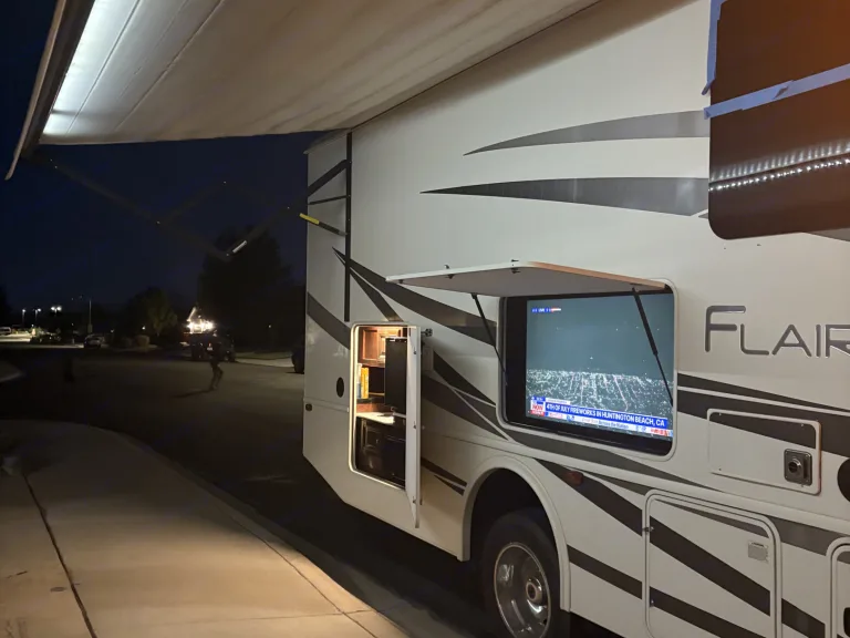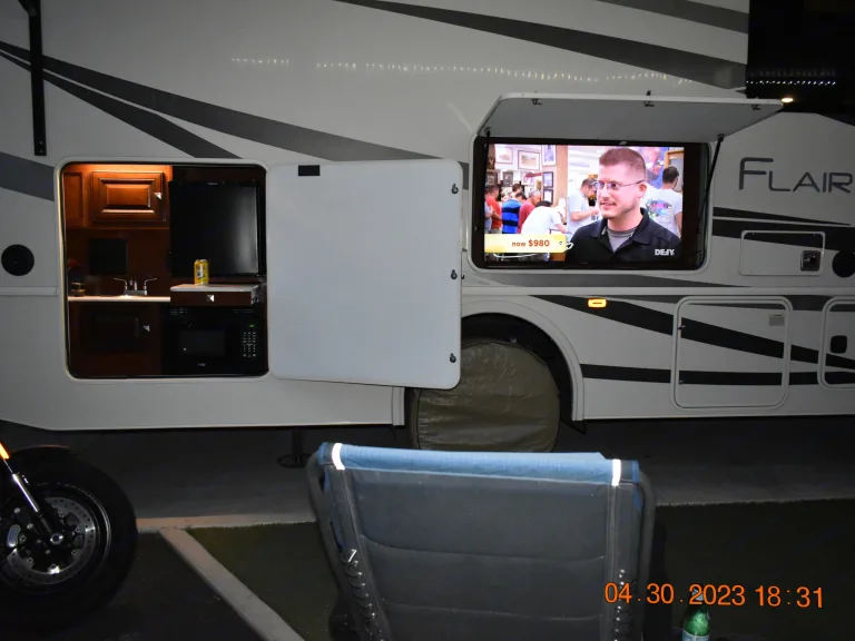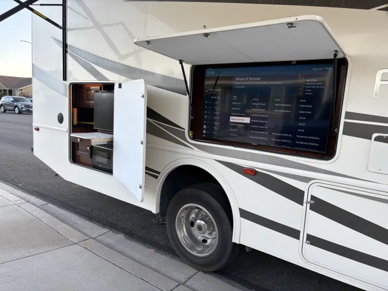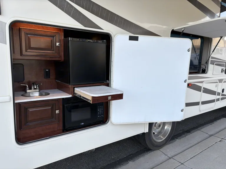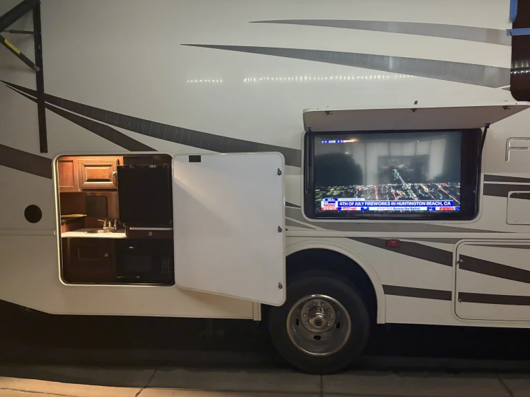 This was my first RV. It will not be available for BM 25 as it already rented out. It has a military theme on the inside, 3 X HD TVs. 50" in the main living room, 37" in the Master Bedroom (Cali King), and a 50" on the outside. There is a sink, Microwave, and Fridge on the outside along with an awning, and hook up for a BBQ. Bluetooth Radio in the cockpit and Master Bedroom with speakers on the outside as well. It has low mileage and in tip top condition. X-box, Satellite TV, and Sat TV is available as well. It's a great rig.What's includedHere is the promotional video for the Beast.