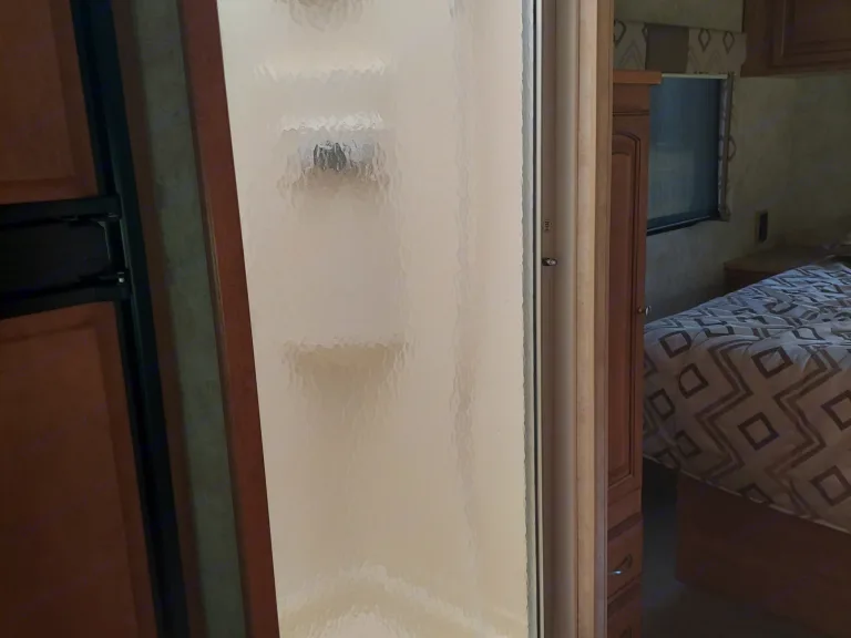 6. Ensure all doors, cabinets and drawers are closed and locked before driving RV (this includes all undercarriage compartments, refrigerator, overhead vents in hallway and bathrooms, bathroom doors, master bedroom door, etc.) to avoid damage while the RV is in motion.