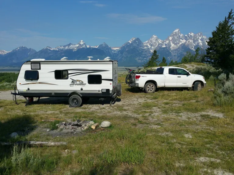 This trailer has everything you’ll need, and it looks good too! At 3,500 pounds it’s pretty light and easy to pull. It sleeps 5 with a queen bed, 2 bunks, and a convertible table.