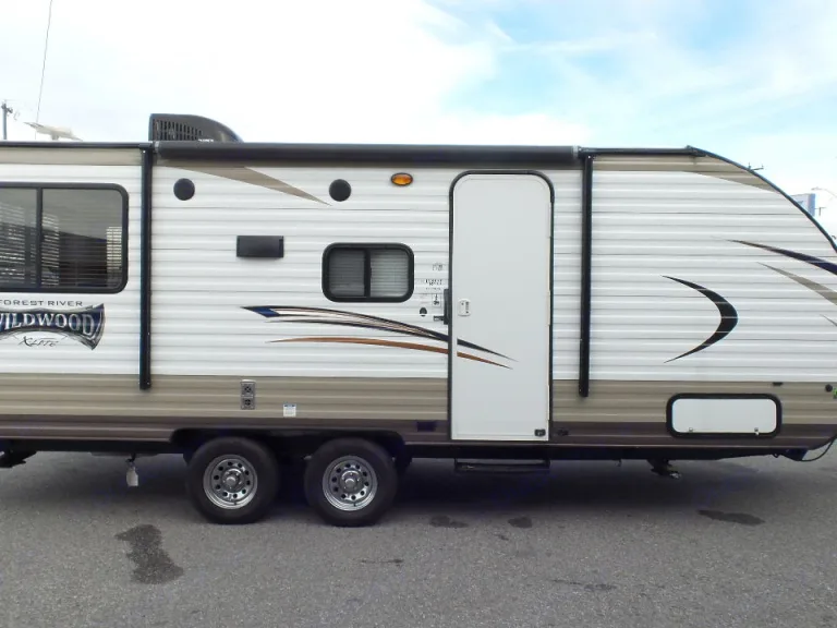 This 23 foot travel trailer is ideal for a couple or small family who is ready to start their adventure in the camping world. The Forest River Wildwood features a rear U-dinette as well as a front sofa with a Murphy bed behind.As you enter this model, along the front of the trailer you will find a jack knife sofa with nightstands and wardrobes on either side. At night easily set up the Murphy bed for the perfect sleeping spot.Along the door side is where you will find the kitchen. There is a double sink for easy clean up, and a three burner range. Above you will find an overhead cabinet for dishes, as well as an entertainment center. Across from the entertainment center there is a refrigerator, and a pantry..The side aisle bathroom features a tub, sink, handy medicine cabinet, and a toilet.Along the rear there is a U-dinette where you can enjoy your meals and snacks throughout the day. At night convert the dinette into additional sleeping space. On either side of the dinette there are counter tops, and so much more!This unit sleeps 4, and offers a 16 foot awning!
