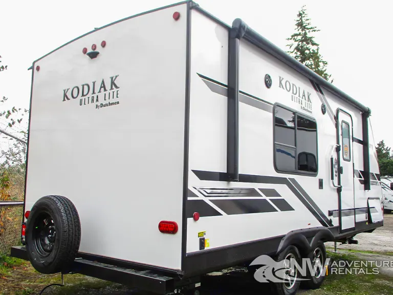 This Kodiak Ultra Lite Travel Trailer from NW Adventure Rentals is the perfect lite weight travel trailer for the smaller groups of adventurers! It has a walk around queen bed and features a roomy rear bathroom with a Large Glass Shower and plenty of storage space! You also have a lot of counter top space everywhere so you don't have to worry about where to sit things down! Fully socked kitchen and complete with stainless steel appliances for that luxury feel making this ultra light trailer the right fit.This unit features.Sleeping for up to four people.