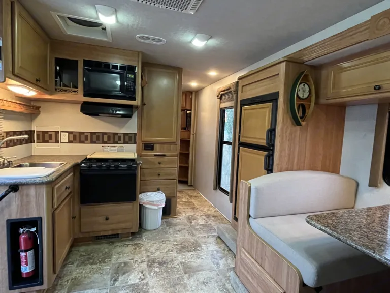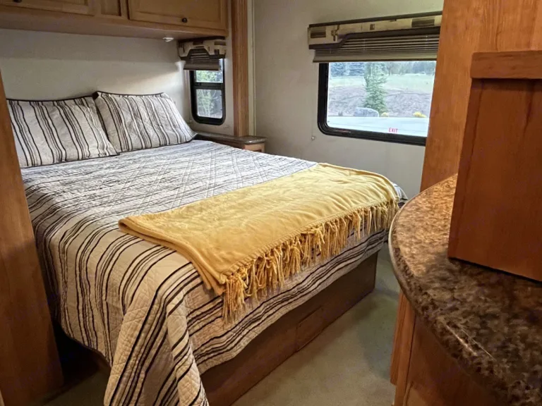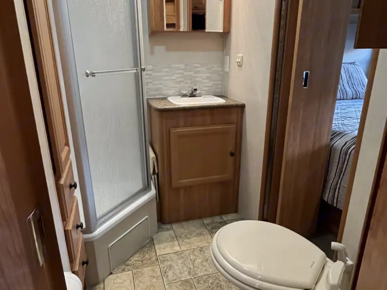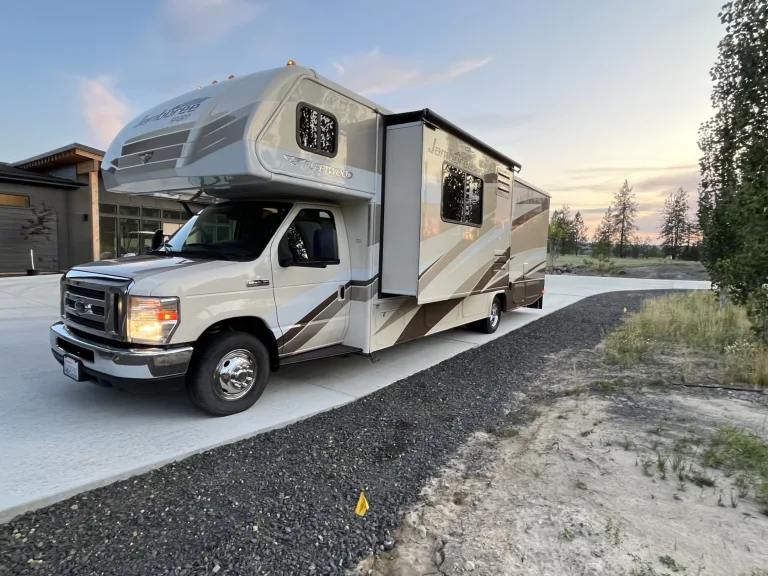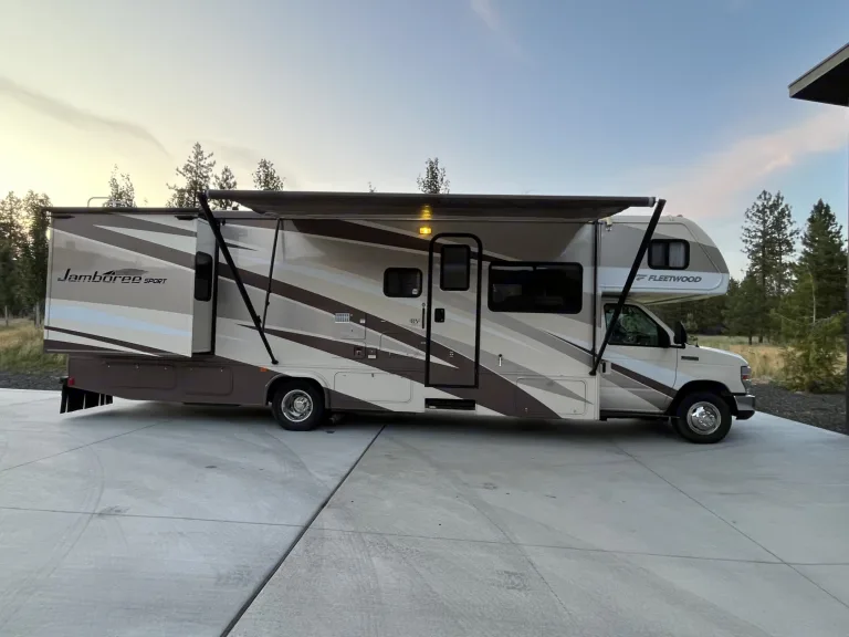 Are you ready for your next road trip? Take this comfortable Class C RV on the road to create memories with friends and family. This house on wheels sleeps 6 comfortably with an overhead full size bunk, convertible dinette, and a rear queen bed. With approximately 31 ft, this RV is ideal for national parks and campgrounds. This Jamboree S is the perfect balance of size and functionality - easy to drive, yet spacious enough to feel like home. The interior is clean and comfortable with neutral tones and plenty of storage throughout. Everything is in working condition.Easy to Drive: Built on a Ford E-450 chassis with a smooth V10 engine - no special license required.Clean and Sanitized: Thoroughly cleaned and sanitized after every rental. No smoking.Features & Amenities:Length: Approx. 31 ft - fits most campsitesSlide-out: One large slide for expanded living space another slide out for the bedroom.Kitchen: Fully stocked with a 3-burner stove, oven, microwave, keurig, double sink, and full-size fridge/freezerBathroom: Full bath with shower, toilet, and sinkClimate Control: Central A/C and propane furnaceEntertainment: TV, DVD Player, and stereo systemStorage: Tons of interior and exterior storage spaceIncludes: Pots, pans, utensils, dishes, paper plates, napkins, ziploc, saran wrap, foil, paper towels, soap, and other gear.Other things to noteYou will have a full tank of gas and propane. Please remember to fill both the gas and propane upon return.