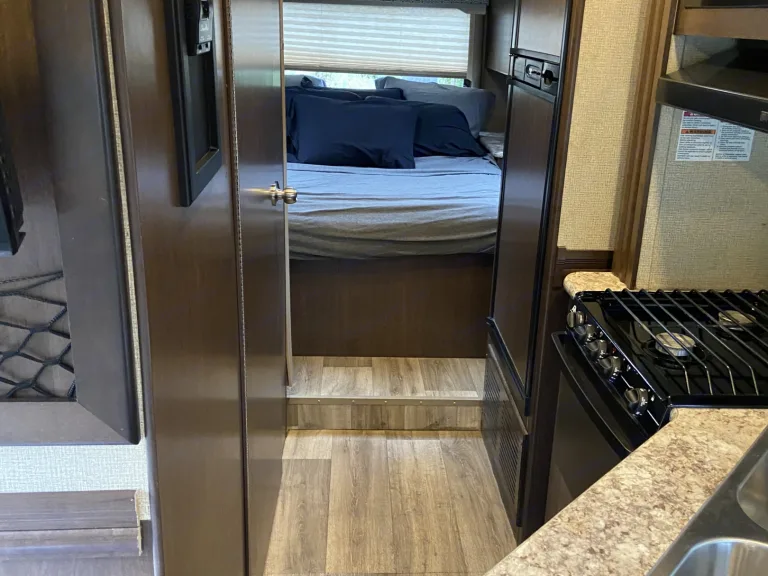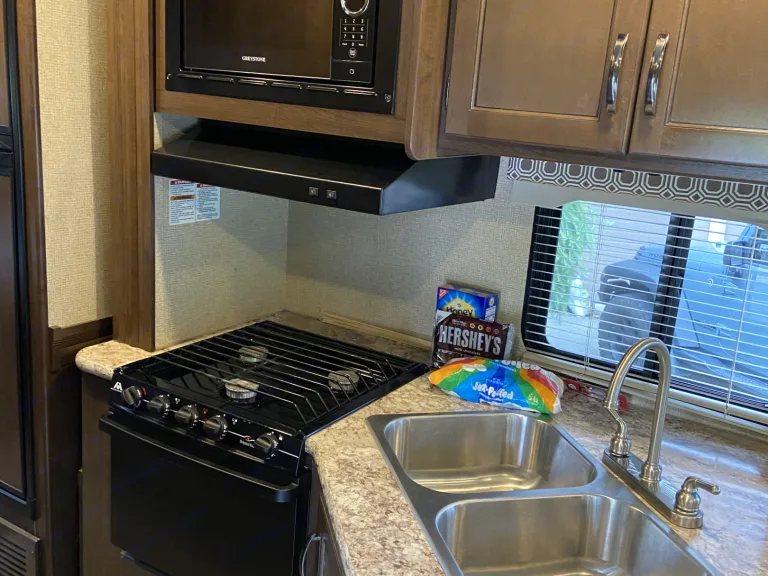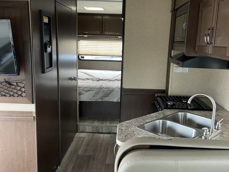 This RV is easy to drive and operate, has a backup/rearview camera. Has a fully functional kitchen including a refrigerator, microwave/convection oven, gas cooktop and dining table.