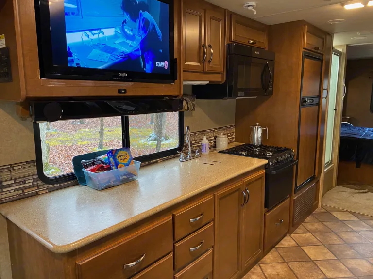 What's included4 camping chairs , board games, family friendly DVD's, plenty of hot chocolate and coffee, fully stocked kitchen (plates, pots and pans, cookware and utensils). Linens available upon request.Other things to noteThere will be a $50.00 dumping fee if RV has not been dumped. There is a $200.00 fee for missing surge protector. All fees for unpaid tolls will be collected when toll received.