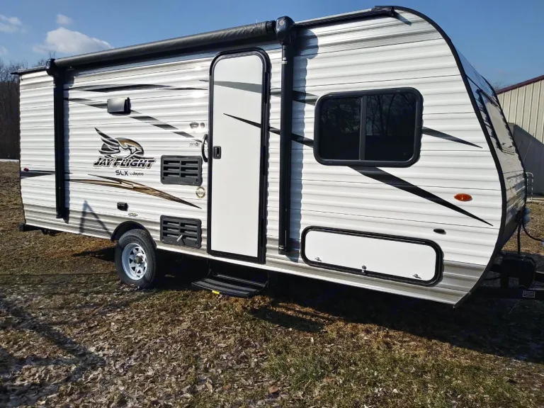 Perfect little camper for a family of four. With a queen size bed and 2 bunk beds in the rear of the camper. Small kitchenette perfect for those rainy days or playing games (also folds down to a fifth bed if needed). Sink, gas stove top, and microwave and some counter spave make up the kitchen. Toilet and shower in the rear. Indoor and outdoor speaker hooked to stereo with Bluetooth capabilities for listening to you personal tunes while your enjoying the outdoors. Electric power awning to get away from the sun. This camper is perfect for those who want to dip their toes into camping!
