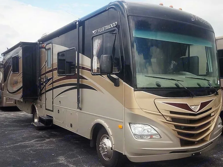 Our smaller Class A is the perfect family RV that has the sleeping capacity of a Class C bunkhouse but the comfort and space of a Class A. The 32' includes space for 10-12 people to sleep along with two dining tables.