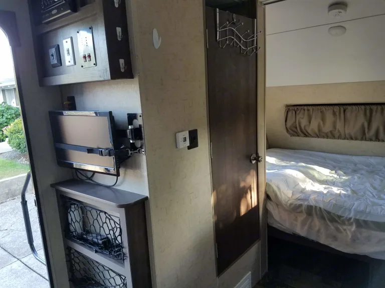 To take full advantage of this camper, you must be plugged into electricity with 30 amp power. Otherwise you will not be able to use most features of this camper. If dry camping, you're basically getting a fancy hard sided tent. This camper is 6 years old and has been used pretty good. It has dings and scratches but no major damages. It's a normal 6 year old camper so nothing is brand new anymore! Thanks for looking!!What's includedComes with a couple pillows, sheet, and comforter. Basic silverware, cookware, and french press. Towels and toilet paper provided as well.RecommendationsTo take full advantage, best if plugged in to 30 amp power.Other things to noteSorry, there is no awning.