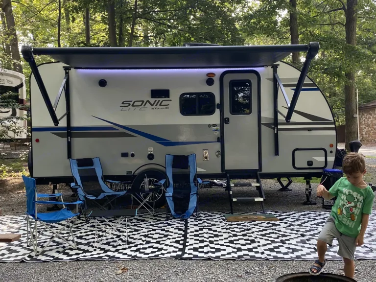 Great for beginners, this Venture Sonic Light 160-VBH sleeps 4 and is lite weight and easy to tow even with a car or light truck.