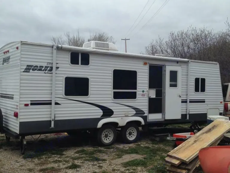 Family Friendly Travel Trailer that has 1 Queen bed and bunk with 3 beds. Very clean and well kept. The trailer has a small full bathroom, kitchen with stove/oven, fridge/freezer and microwave.