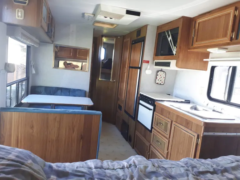 Older trailer but in excellent condition. Sleeps up to 7, cozy and fully equipped with fridge, stove, oven, bathroom and plenty of storage. Runs on gas and electricity with solar assist. Great awning to provide shade. Lovingly maintained.