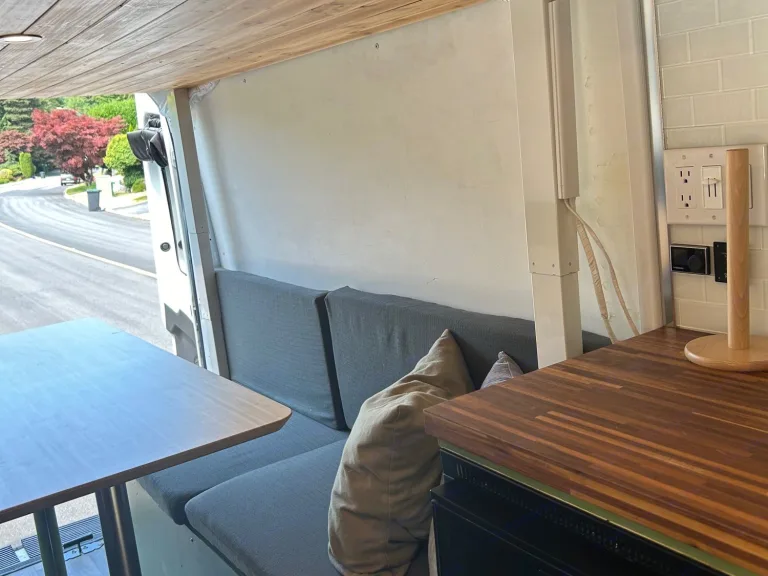 Welcome to our camper van "Ollie", your ticket to exploring the stunning landscapes of British Columbia in comfort and style!Ollie has been thoughtfully modified into a cozy home on wheels, perfect for adventurous couples or solo travelers who want to experience the beauty of nature without sacrificing the comforts of home. With a fully equipped kitchen, including a sink, a 3-burner gas stove, an oven, and a fridge, you can cook up delicious meals anywhere you stop. And when it's time to relax, turn on the Webasto heater or MaxxAir fan to suit your desired temperature and lay down in a comfortable bed that offers a great night's sleep, no matter where your adventures take you. For remote work, or for a cozy wilderness movie night, you can book our Starlink high-speed wifi and our portable HD projector add-ons.One of the coolest features of our camper van is the electrically movable bed. With just the push of a button, you can easily transform a spacious seating area for up to 8 people into a comfortable full-sized bed that's perfect for two. And when it's time to hit the road again, simply raise the bed back up to make the most of the interior space.Located in North Vancouver, our van is the perfect starting point for your BC adventures. From here, you can easily explore the mountains, forests, and beaches that make this province so special. Whether you're looking for hiking trails, kayaking, surfing, or simply soaking in the natural hot springs, British Columbia has it all. And with our camper van rental, you can do it all at your own pace, in your own style.Now, we know that many of our fellow travelers like to bring their furry friends along for the ride, but we have to be a bit strict on this one. Unfortunately, we can't allow pets in our van. And while we certainly don't judge anyone's lifestyle choices, we kindly request that you don't light up inside the van either. Our tiny home may be cozy, but we kindly ask that you step outside and enjoy that beautiful BC fresh air while you indulge in your vice. Thanks for your understanding, and we look forward to sharing our little slice of paradise with you!What's includedDelivery and pickup available within 50km radius upon request.Included: