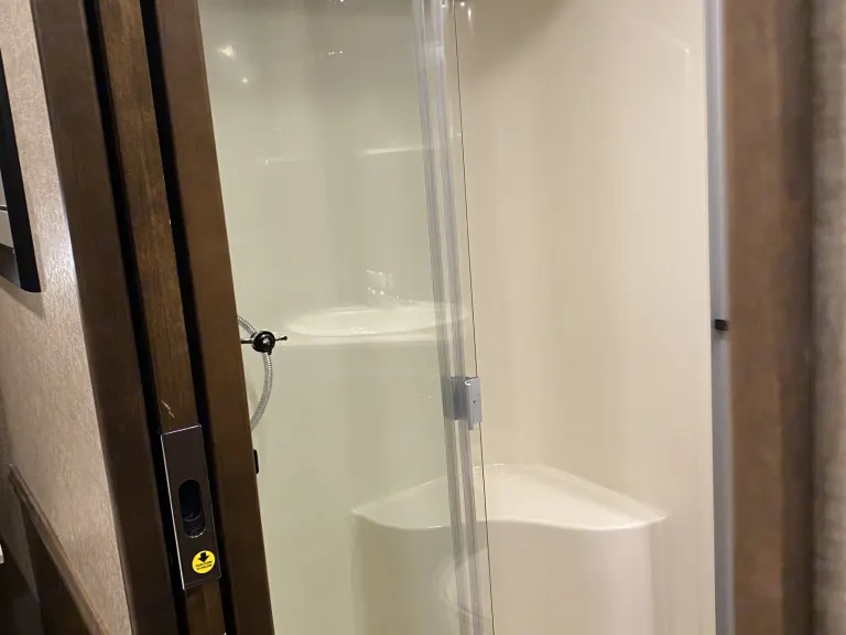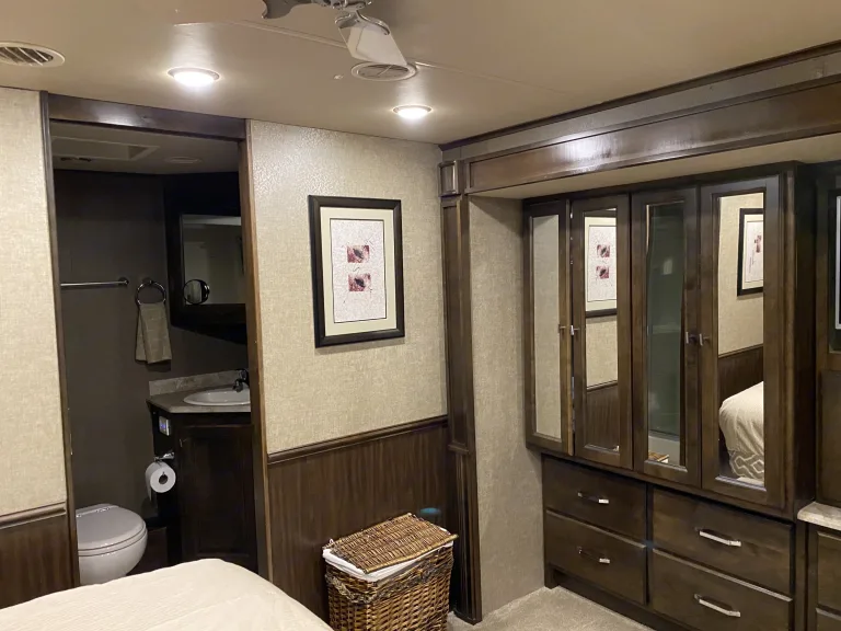 "Allie" is a gorgeous 2018 Barely used, like new, custom RV with a classy look yet comfortable feel. Featuring a Sleep number King bed with USB's on both sides, recessed and scone lighting, ceiling fan and your own private bathroom with extended height shower and a porcelain toilet just like home. Master bedroom has ample storage over /under the bed, hanging closet, & drawers, w/flat screen TV, & solid wood closing door. Stacking separate washer & dryer make life simple.