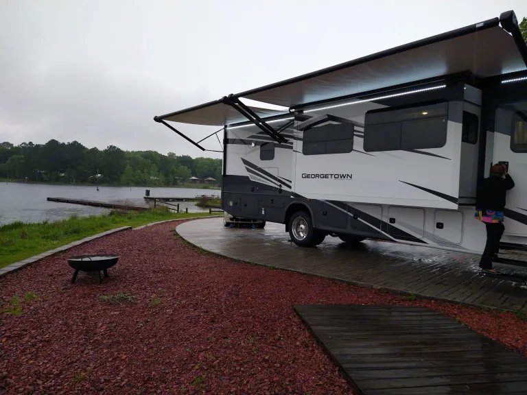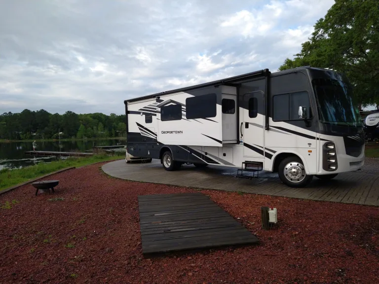 This brand new 2021 Two bath King Suite Georgetown 37' long is fully equipped with King size bed Own suite room with it's on full bath/shower plus an additional guest bathroom. Sink, Stove and Oven, full size refrigerator. Tons of storage space underneath for your great travels. Our St Augustine, FL location is close by to the amazing Anastasia State Park for camping in addition to many other locations. This historic city, (The Oldest City in the US) is awesome!! Enjoy it in my new RV that I'm willing to share. This brand new V8 Godzilla Ford V8 engine has plenty of power to bring you around along with a tow hookup.What's includedEasy for you to pickup as I have plenty of parking on the premises if you should need to leave your car. Includes all the cookware, utensils and coffee maker you may need. RecommendationsI recommend you try Anastasia park or KOA here in St. Augustine as they are both by and or on the Beach. There a good handful of other awesome locations close by depending how much time in advance you book; along with Bryn Mawr Ocean Resort. Just having a great spot for this beautiful rental, leave it parked at your location and enjoy this great city.Other things to noteEnjoy the inside of this RV. Just remember no smoking inside the RV along next to any open windows. Also feel free to extend the awnings however please remember to bring them in if you leave the RV alone and or if you see weather coming on as if you are familiar with RVs they are easily torn off by any abrupt storm.