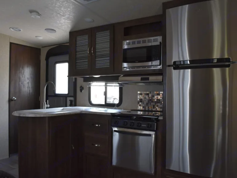 This is 2018 Forest River Vibe equipped with large fridge, stove, cook top, Microwave, Dishes (Plates, Bowls, Cups for 8), silverware, Serving Utensils, pots and Pans, Coffee Maker, Toaster. Comforts of home with a 50" 4k HD Samsung TV, Blue Ray Player and Fireplace. This unit sleeps 8 (4 Adults and 4 Kids). Large awning for relaxing outside with outdoor speakers, TV hookup and outdoor Kitchen. Outside Chairs (4) included with Camper Rental. Blue LED Glow lights under the trailer and White LED lights on Canopy provide plenty of light to hang out at night, Everything needed to make your camping experience enjoyable.